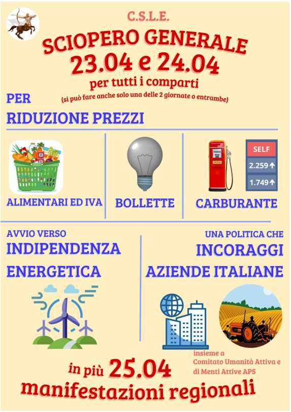 Azioni di sciopero previste per le giornate del 23 e 24 APRILE 2026