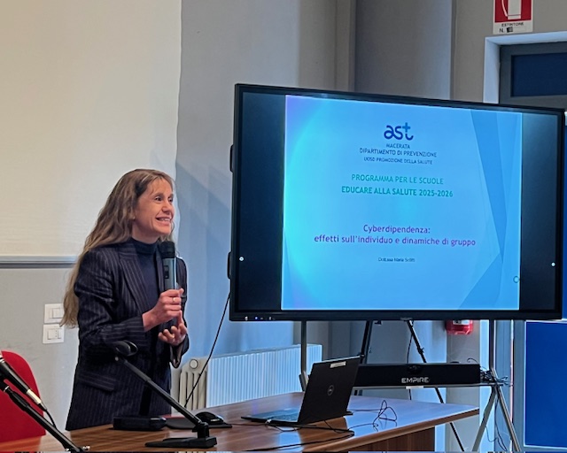 Il ciclo di incontri si è aperto martedì 14 aprile con una giornata speciale dedicata alle classi terze. La prima parte della mattinata ha visto l’intervento della Dott.ssa Maria Sellitti (AST Macerata), focalizzato sui rischi della cyberdipendenza. A seguire, l’aula si è trasformata in un laboratorio esperienziale grazie all’attività di peer tutoring: gli studenti dell’IPSIA, coordinati dai loro insegnanti, hanno vestito i panni di “tutor” per i ragazzi delle medie, proponendo approfondimenti teorici e pratici in forma ludica. L’ospitalità dell’istituto, rappresentato dalla vicepreside Prof.ssa Linda Alfano, non è stata casuale. L’IPSIA di Matelica, infatti, vanta una storica curvatura sanitaria che si affianca al tradizionale indirizzo meccanico. Con i suoi percorsi specializzati in Odontotecnico e Ottico, la scuola rappresenta un punto di riferimento territoriale per la formazione di figure professionali legate alla salute, rendendola la cornice naturale per questo tipo di iniziative.
